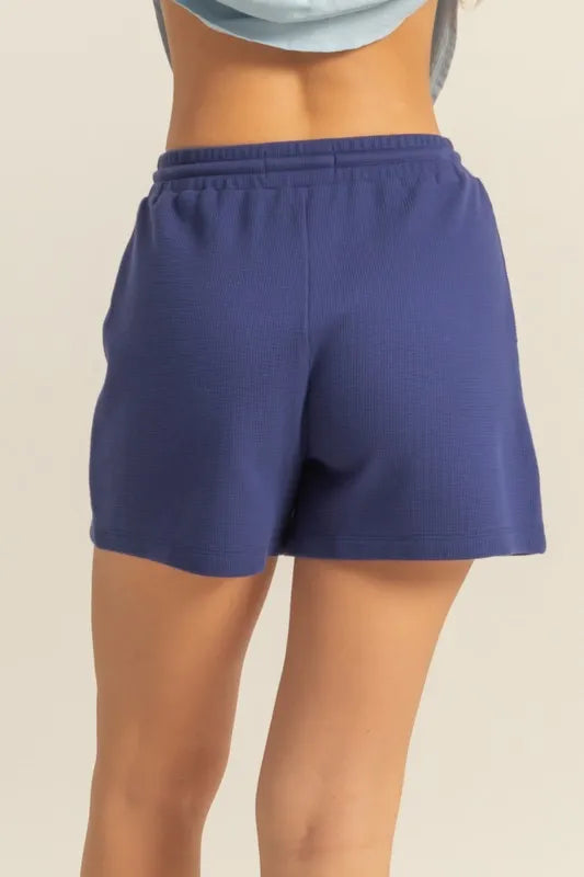 HYFVE Drawstring Waffle Knit Front Pocket Shorts - Dark Blue / M está agotado y se enviará tan pronto como vuelva a estar disponible.