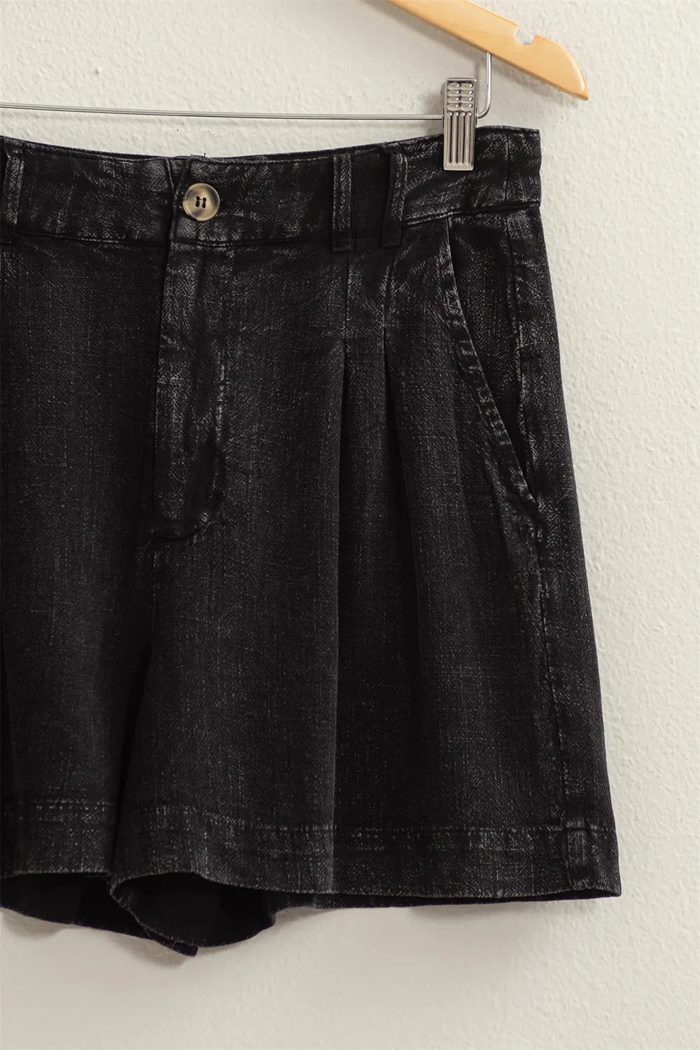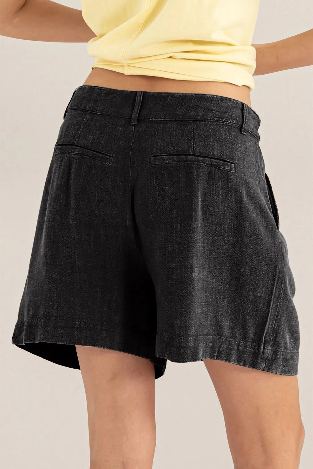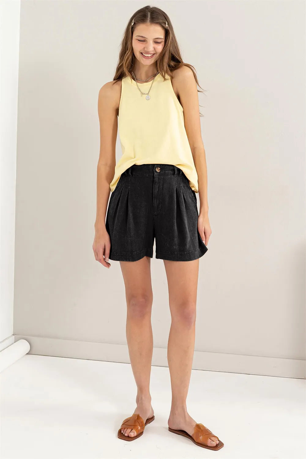 HYFVE High Waist Pleated Linen Shorts - Black / S está agotado y se enviará tan pronto como vuelva a estar disponible.