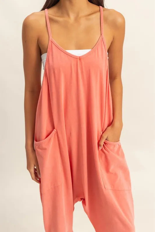 HYFVE Relaxed Fit Mineral Washed Overalls with Pockets - Coral / S está agotado y se enviará tan pronto como vuelva a estar disponible.
