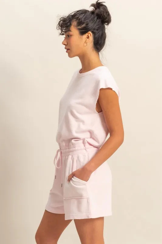 HYFVE Round Neck Cap Sleeve Drawstring Waist Romper - Soft Pink / S está agotado y se enviará tan pronto como vuelva a estar disponible.