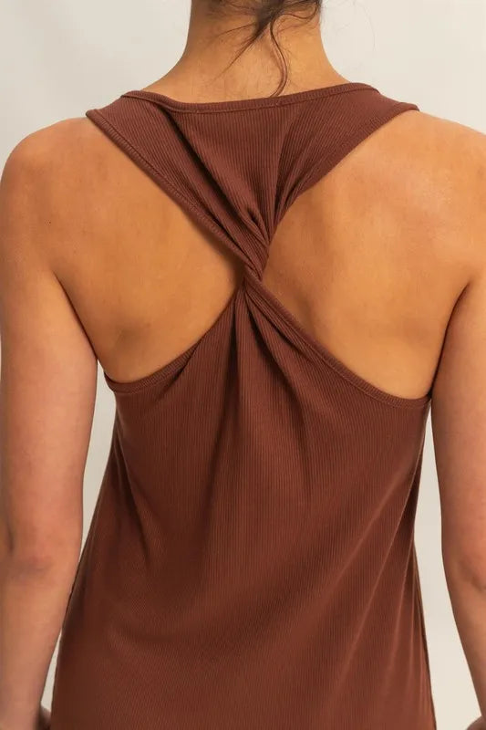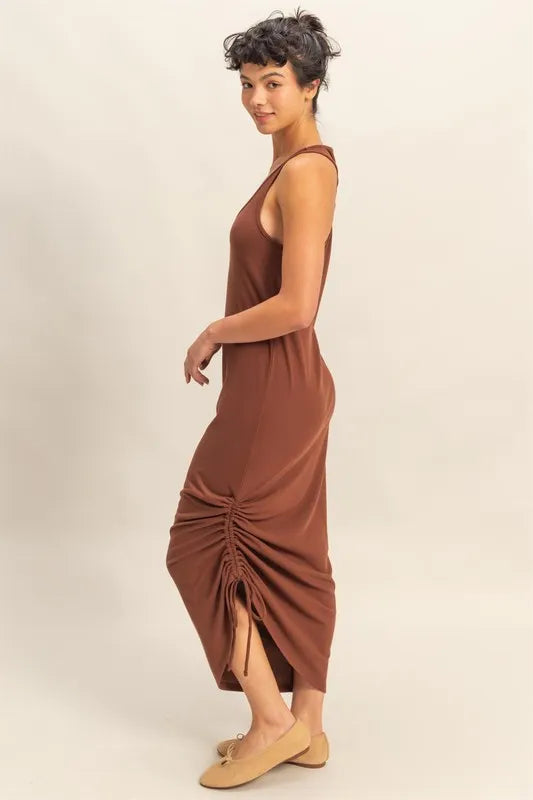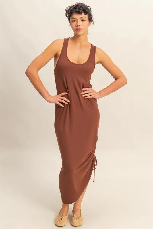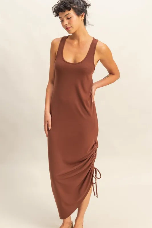 HYFVE Scoop Neck Side Tie Detail Midi Dress - CHESTNUT / S está agotado y se enviará tan pronto como vuelva a estar disponible.