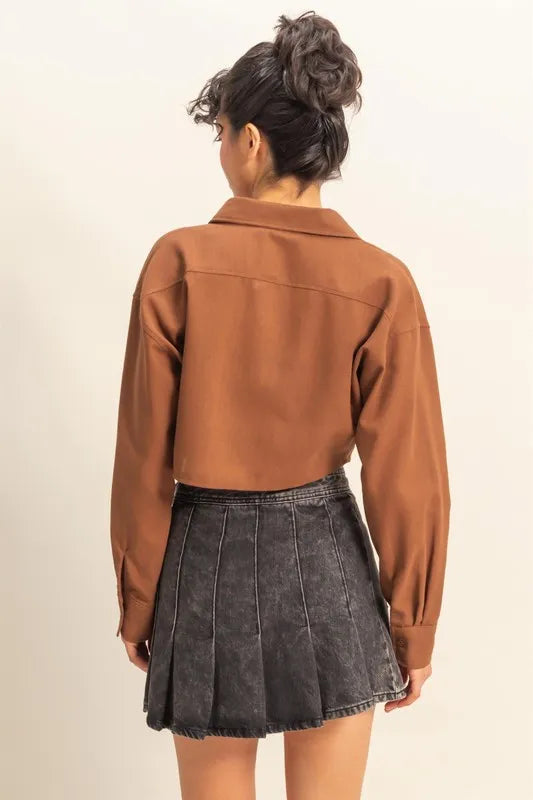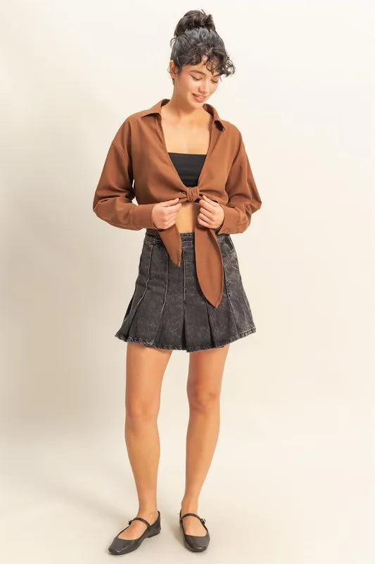 The Washed Tie Front Crop Top is a trendy and versatile wardrobe piece. Featuring a washed fabric finish and a stylish tie front detail, this crop top offers a laid-back and chic aesthetic. Perfect for pairing with high-waisted bottoms, this top is a must-have for creating effortless and fashion-forward looks.