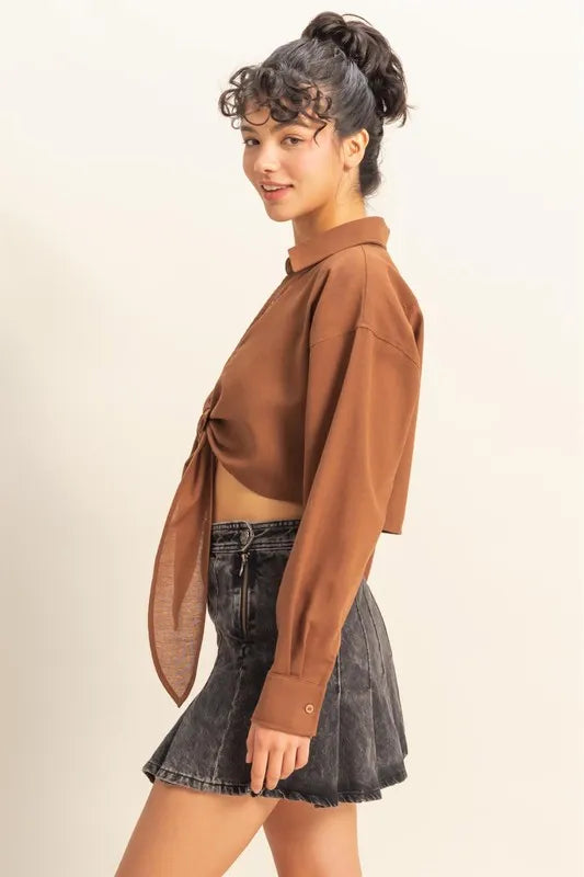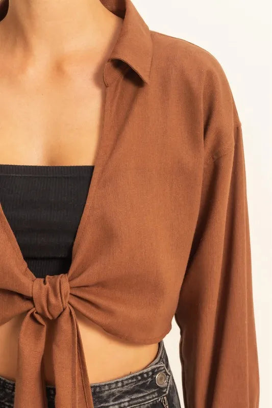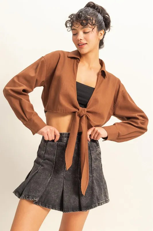 HYFVE Washed Tie Front Crop Top - CHESTNUT / S está agotado y se enviará tan pronto como vuelva a estar disponible.