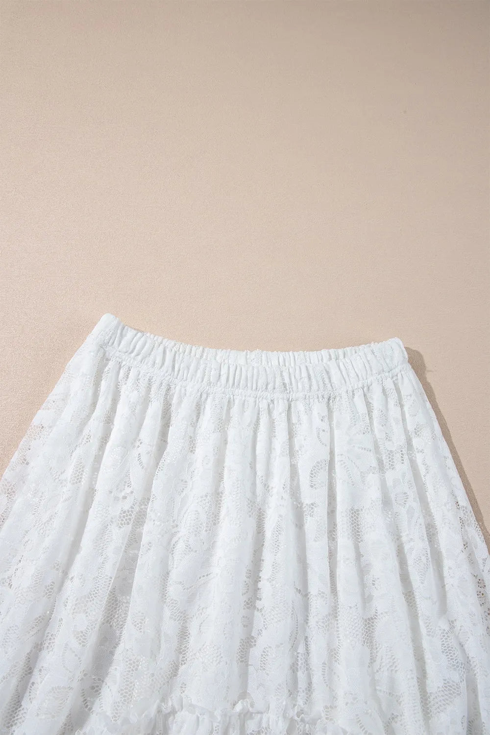 Lace High-Low Skirt - White / S está agotado y se enviará tan pronto como vuelva a estar disponible.
