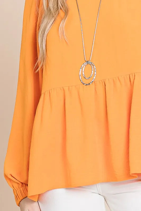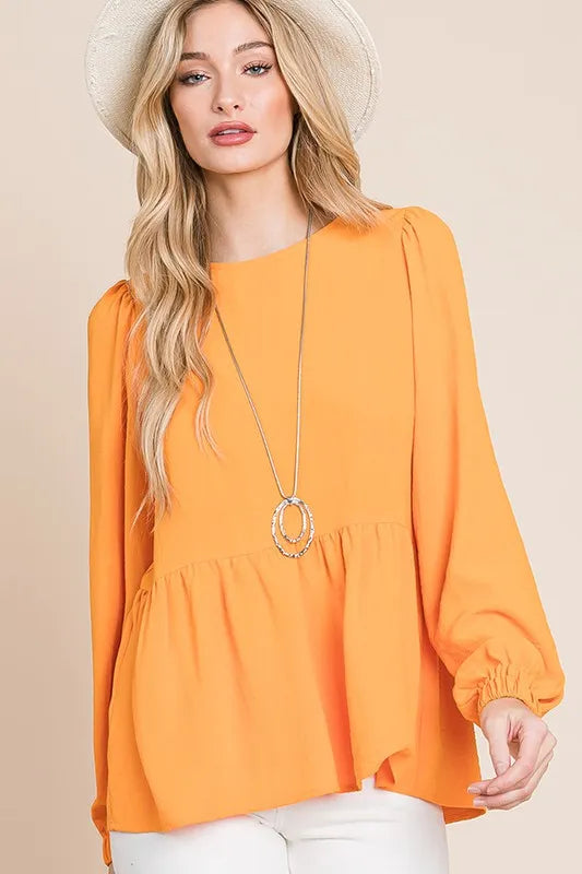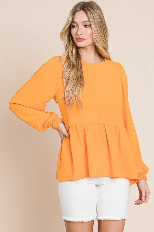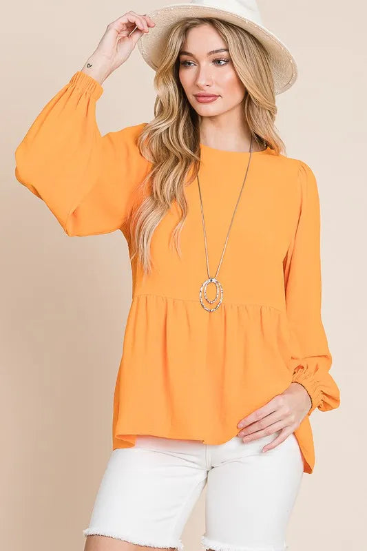Lime 'N' Chili Round Neck Ruffle Hem Balloon Sleeve Blouse - ORANGE / S está agotado y se enviará tan pronto como vuelva a estar disponible.