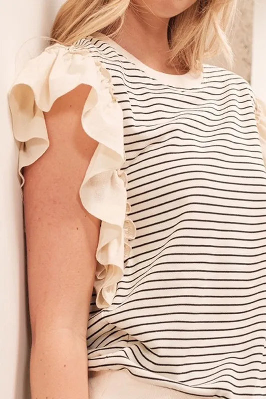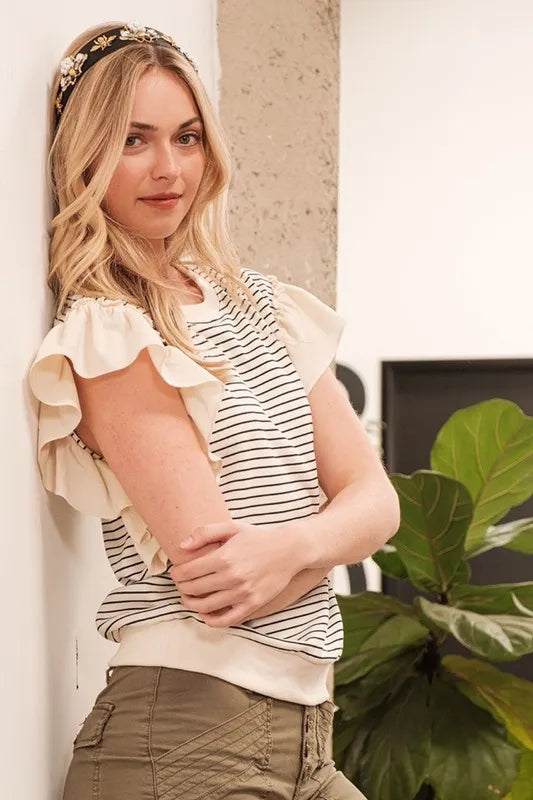 Lime 'N' Chili Striped Contrast Ruffle Detail Sleeveless Top - IVORY / S está agotado y se enviará tan pronto como vuelva a estar disponible.