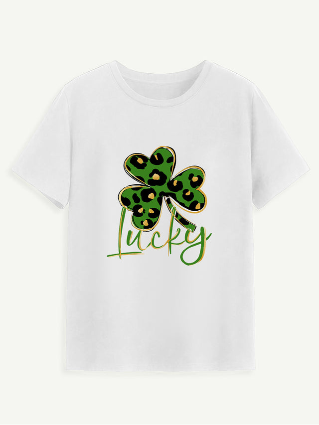 Lucky Clover Round Neck Short Sleeve T-Shirt