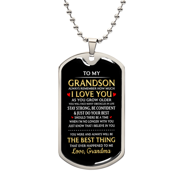 Luxury Graphic Dog Tag Necklace For Grandson - Military Chain (Silver) / No está agotado y se enviará tan pronto como vuelva a estar disponible.