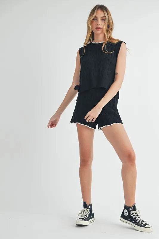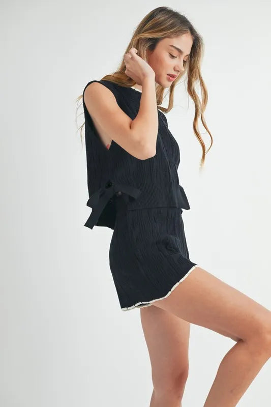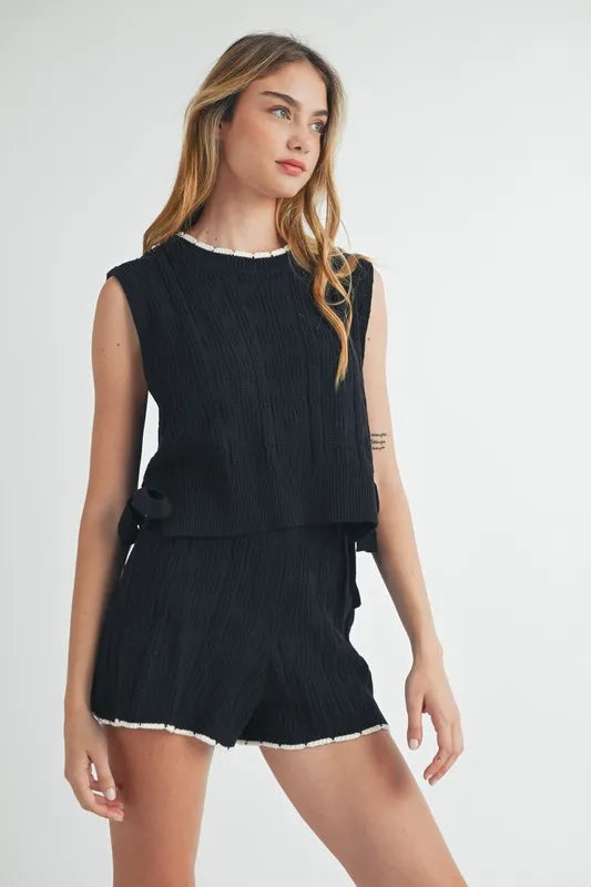 MABLE Side Tie Detail Knit Vest and Shorts Set