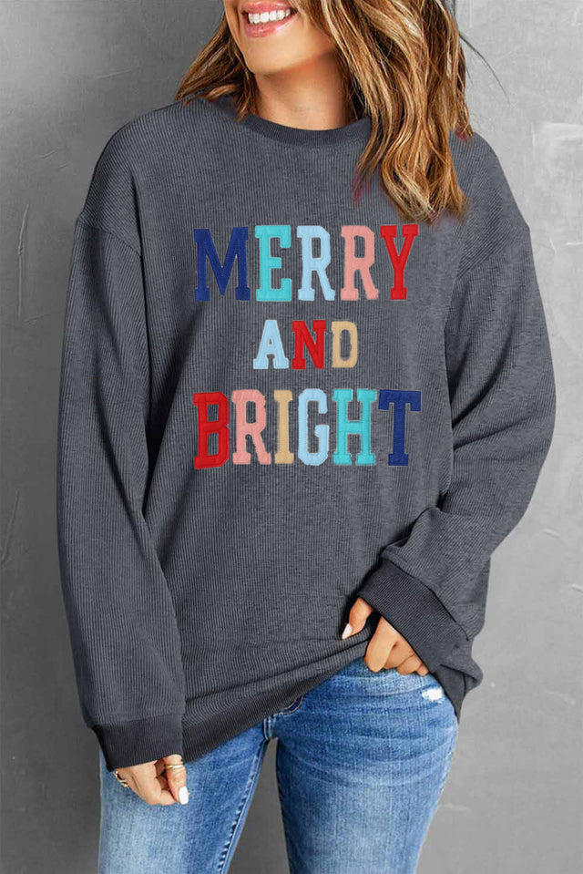 MERRY AND BRIGHT Graphic Sweatshirt - Dark Gray / S está agotado y se enviará tan pronto como vuelva a estar disponible.