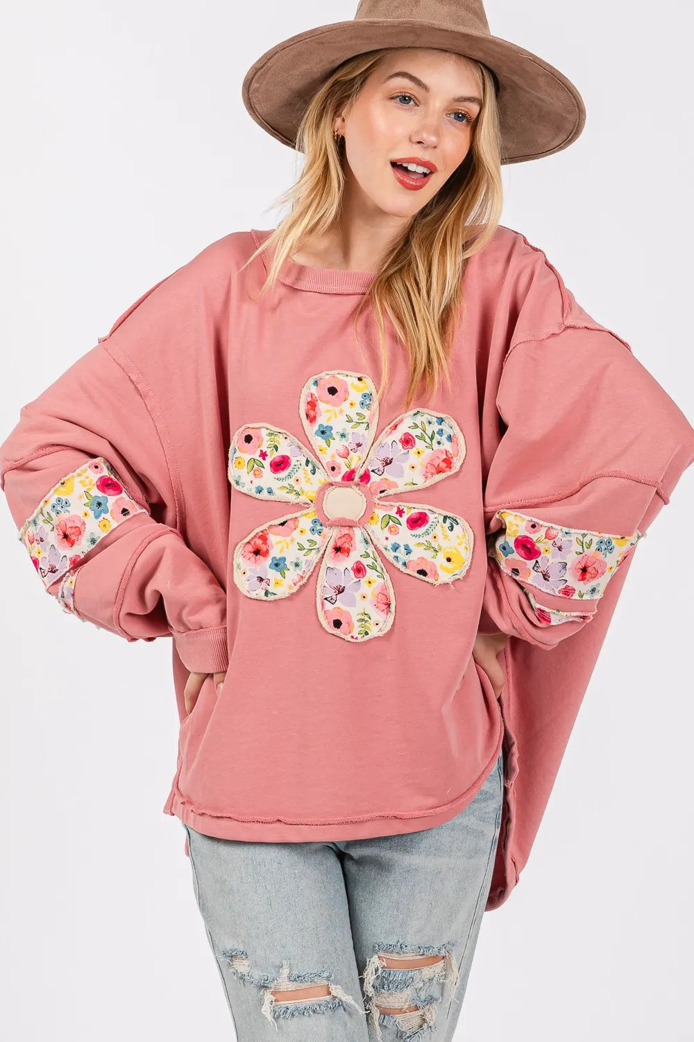 SAGE + FIG Daisy Patch Applique Long Sleeve Sweatshirt