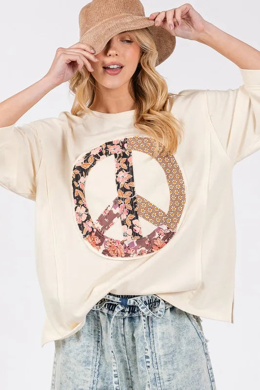 The Floral Peace Patch Round Neck Top is a charming blend of vintage-inspired aesthetics and modern comfort. Adorned with a delicate floral peace patch, it effortlessly exudes a sense of tranquility and style. Pair it with jeans for a casual look or dress it up with a skirt for a more refined outfit—versatility at its finest.