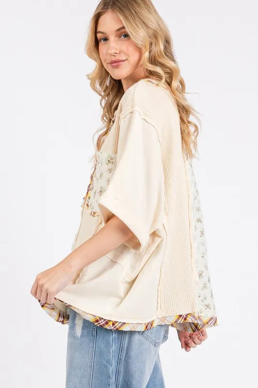 SAGE+FIG Half Button Floral Patchwork Top
