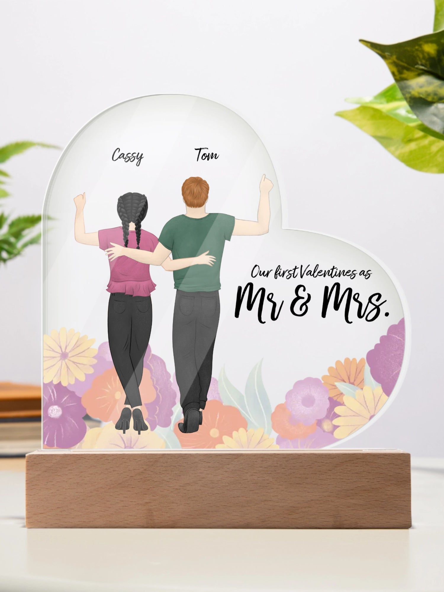 Create a memorable welcome to any room with our Printed Heart Acrylic Plaque. This beautiful sign is handcrafted using premium acrylic and a vibrantly printed design. Display your beautiful plaque in your own home or give it as a gift to make a statement. This would make an ideal gift for your beloved partner, family members, or dear friends on special occasions like anniversaries, birthdays, or any event where you want to express your love and appreciation in an unforgettable way. Your plaque will be crafted from premium acrylic with a professionally printed design for a polished look. It comes with a stylish wooden LED base, and you can choose between a USB plug-in option OR a cordless battery-operated option (requires 2 AAA batteries, not included). Both LED bases feature 7 vibrant colors, allowing the user to customize the lighting with various color changes and dynamic cycles. Product specifications: Premium acrylic Size: 7" (17.8cm) height x 5.9" (149.86mm) width Acrylic Depth: 0.1" (5mm) Sharp, detailed printed design Corded LED Base uses an attached controller to customize light options Battery Powered LED Base uses a single button to customize light options with an On / Off switch located on the bottom of base Each order is lovingly packaged and ready to be cherished for a lifetime!