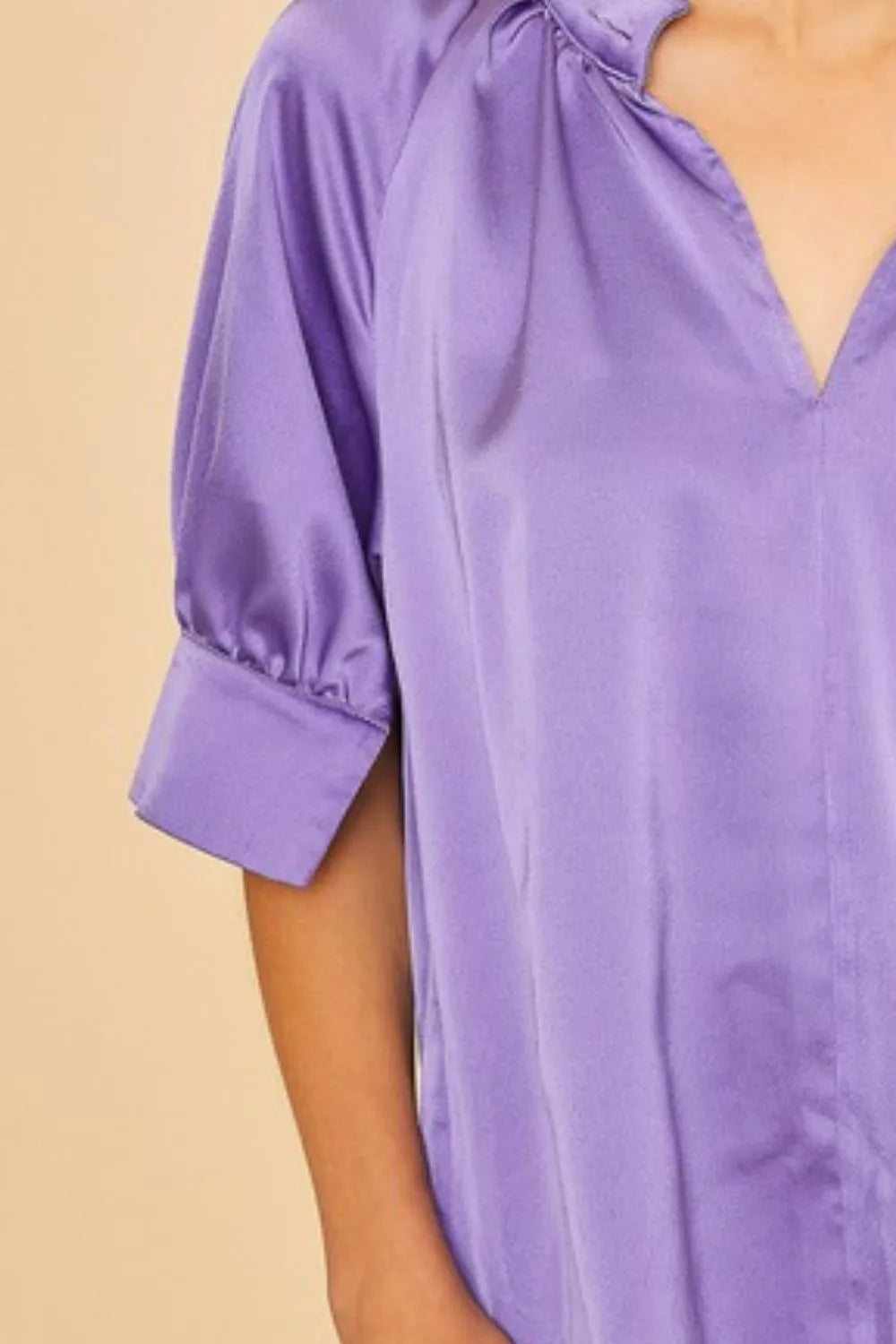 Annie Wear Multi Color Printed V-Neck Open Woven Blouse Top - VIOLET / S is backordered and will ship as soon as it is back in stock.