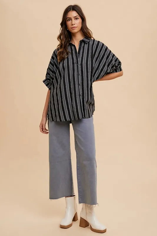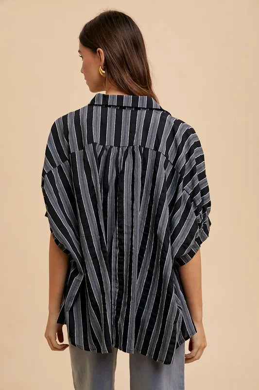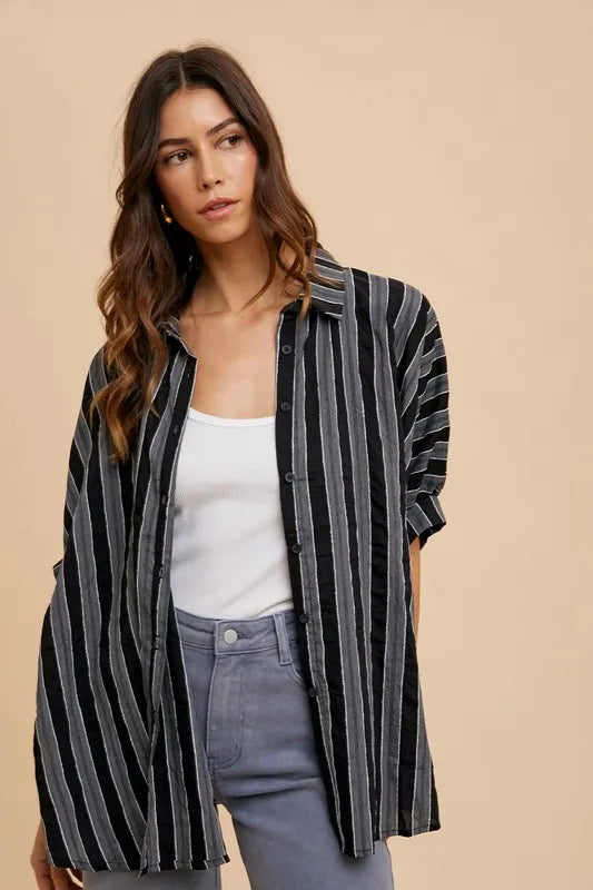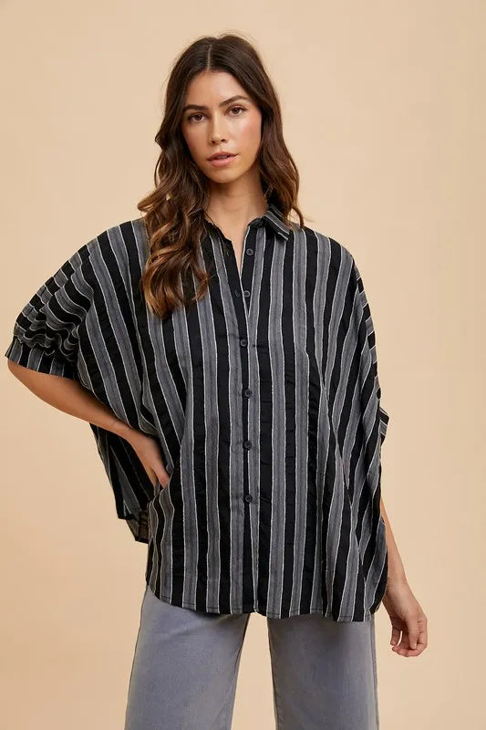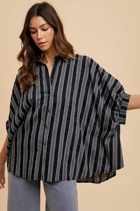 Annie Wear Oversized Drop Shoulder Striped Woven Shirt