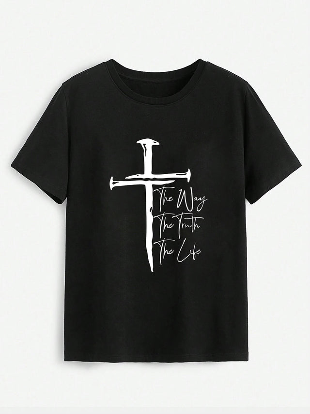 Cross Graphic Round Neck T-Shirt - Black / S is backordered and will ship as soon as it is back in stock.
