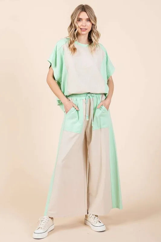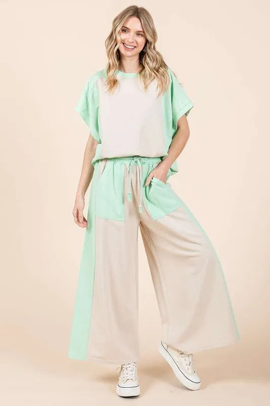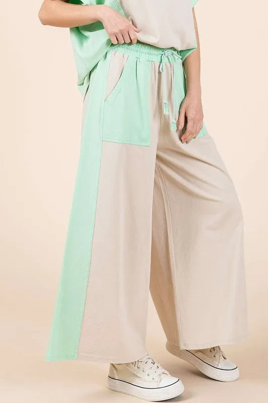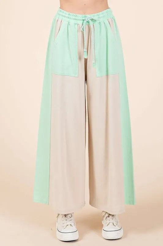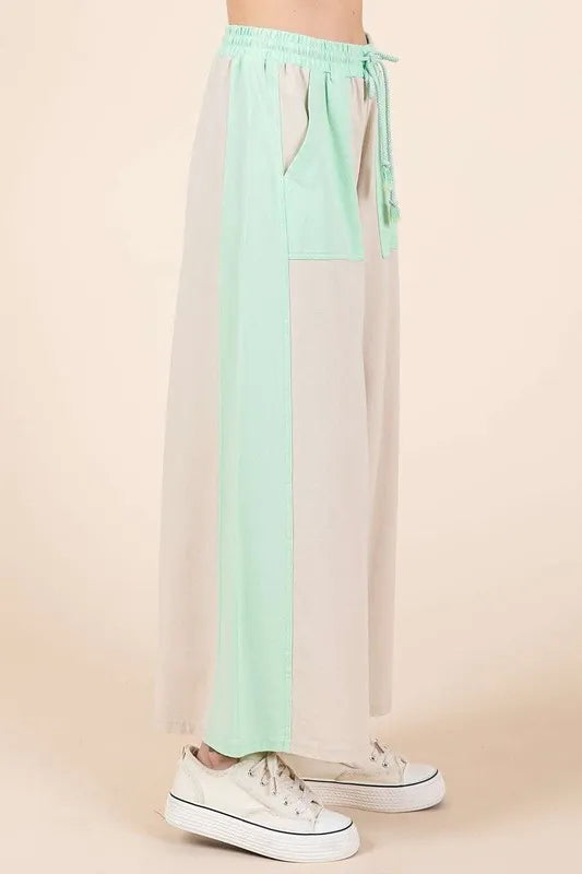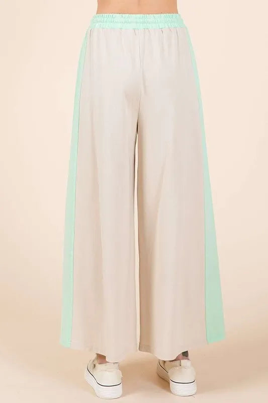 Mittoshop Color Block Wide Leg Pants - Natural/Mint / S is backordered and will ship as soon as it is back in stock.