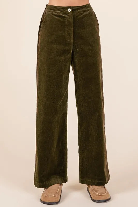 Mittoshop Corduroy Back Elastic Waist Pants - Olive / S is backordered and will ship as soon as it is back in stock.